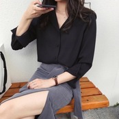 ベラ哲学 2020 春ソリッド女性 V ネックオフィスレディトップス白ブラウス秋長袖女性シャツシフォンブラウストップス ロング ホワイト スプリング 春物 Vネック ソリッドカラー 会社 学校 通勤や通学にも bel34817260279 | aliel