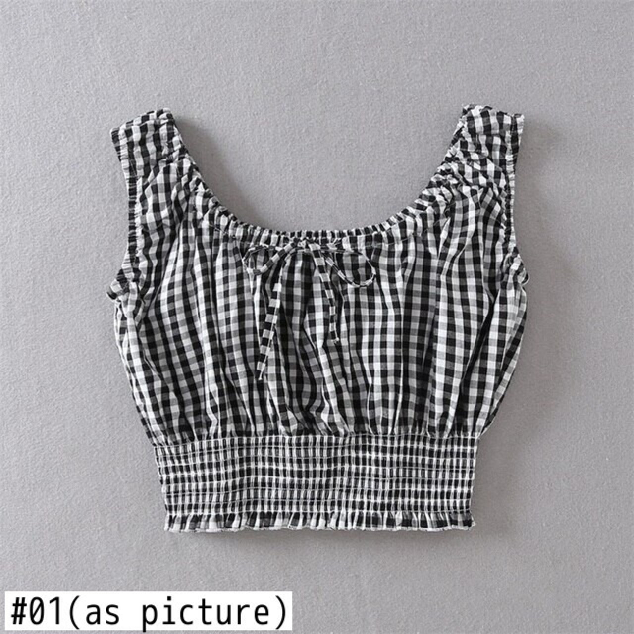 女性の夏のオフショルダーネクタイネックショートトップセクシーなチェック柄クロップブラウスリサ同じ摩耗弾性ブラウスシャツ エラスティック 伸縮 サマー 夏物 bel59902055404 | aliel