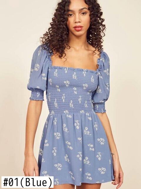 Bella Philosophy 半袖 セクシー ミニワンピース プリント 花柄 スクエアカラーワンピース 伸縮性 レディース Aラインワンピース ショート ハーフスリーブ エラスティック スクウェア bel50161465075 | aliel