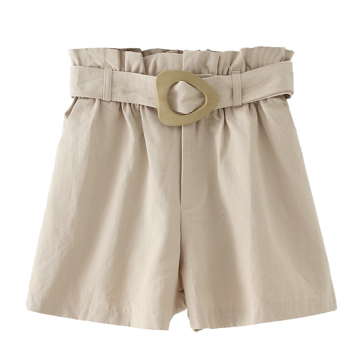 スタイリッシュな無地ボタンカフスショーツ女性 2019 弾性ウエストポケットショートパンツ Pantalones Cortos エラスティック 伸縮 ブルマー ソリッドカラー bel59078695574 | aliel