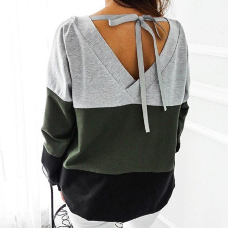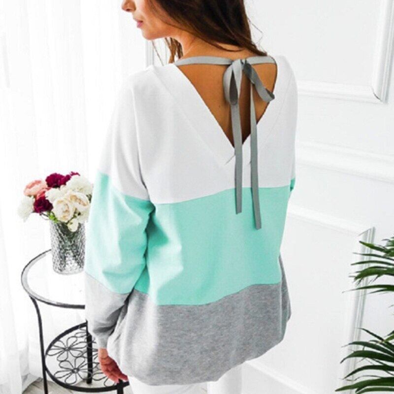 ベラ哲学春 O ネック長袖ルーズプルオーバーバック V 襟暖かいブラウス女性ニットスウェットファムトップス ロング シャツ スプリング 春物 Oネック フェミニン bel84700033652 | aliel
