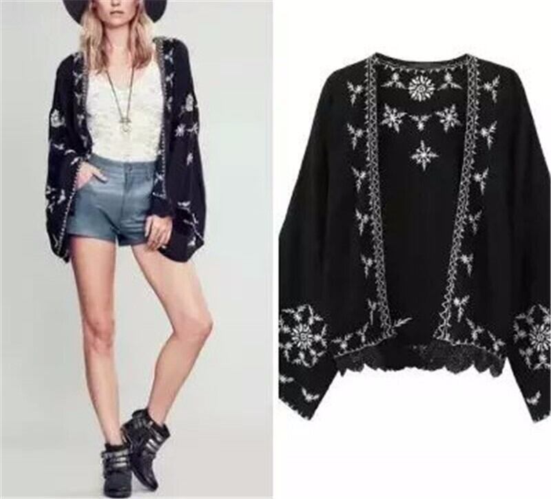 2018 夏秋新部族スタイルヴィンテージエスニック花柄刺繍農民ガーゼ女性着物ジャケット黒、白 ホワイト レッド ブラック サマー 夏物 オータム 秋物 ビンテージ bel56811894391 | aliel
