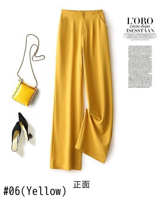 女性弾性ウエストワイド脚白黄色パンツ春ルーズウエスト長ズボンシックなパンツ ロング ホワイト エラスティック 伸縮 スプリング 春物 ワイドレッグ ワイドパンツ bel74819252987 | aliel