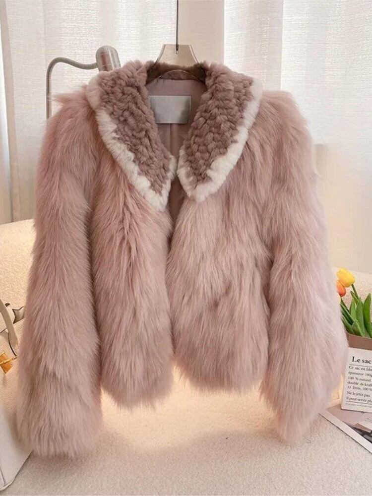 ピンクの毛皮のようなファッショナブルな気質のショートコートの女性の 2022 冬の新しいスタイルの厚く暖かい毛皮のような模造キツネの毛皮のトップ ウィンター 冬物 bel76612295989