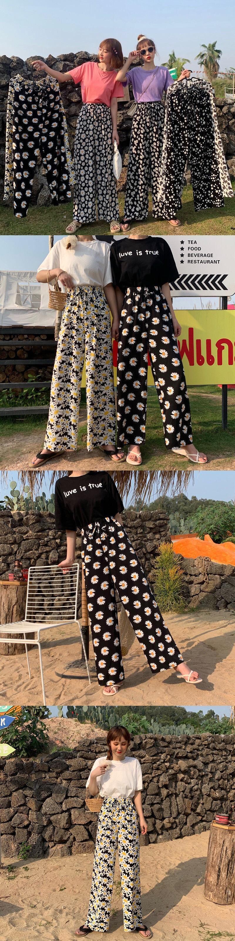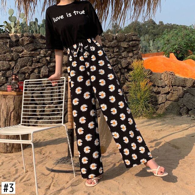 女性の夏のプリント花柄パンツホリデーレディ自由奔放に生きる弾性ウエストワイドレッグパンツプラスサイズボトムス エラスティック 伸縮 大きめサイズ サマー 夏物 ワイドパンツ bel73762609107 | aliel