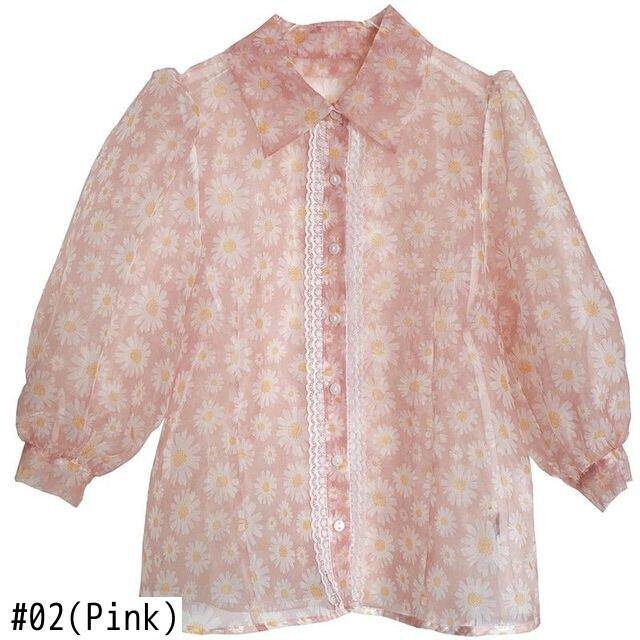 Bella Philosophy フローラル プリント メッシュ レディース ブラウス シャツ パフ スリーブ ターン ダウン襟自由奔放に生きるトップス因果 花柄 bel68327351639