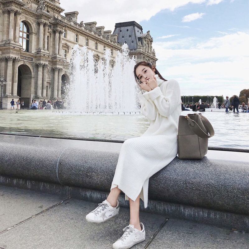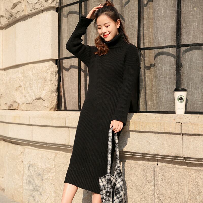 ベラ哲学秋冬襟暖かい女性ロングセーターレディソリッドハイウエストドレス女性のエレガントなニットvestidos ハイウェスト オータム 秋物 ウィンター 冬物 ソリッドカラー bel5107485499