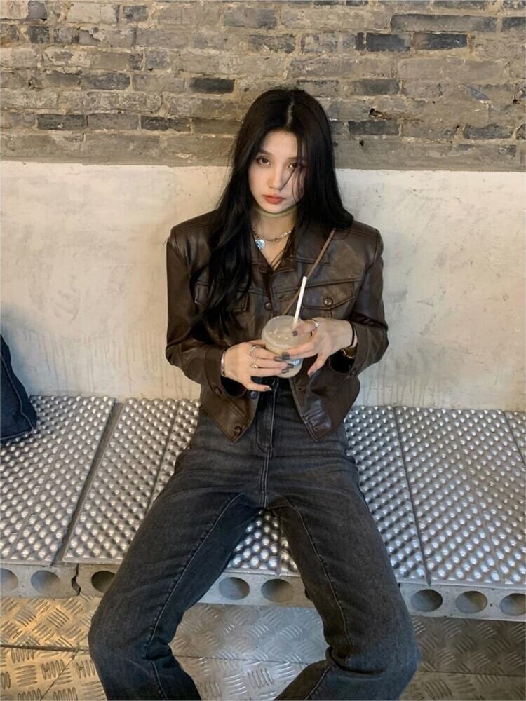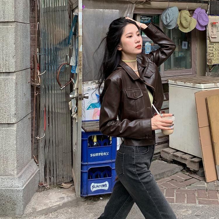 気質英国スタイル レザー ジャケット新しいショート Pu レザー爆発レトロ オートバイ レザー ジャケット コート bel94655422344