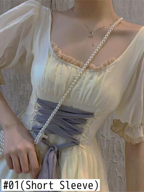 女性の夏のフレンチコートスクエアカラードレス 2022 レースアップウエストの妖精のドレス vestidos es パラ mujer エレガント サマー 夏物 スクウェア bel73291596929 | aliel