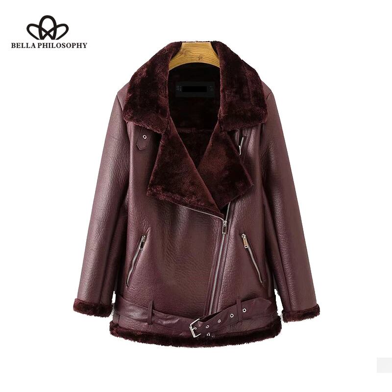 Bella Philosophy 2021 Winter Coat Thickened Padded Warm PU Leather Motor Coat Shearling Coat casaco camurça feminino ウィンター 冬物 レザー bel58249521269 | aliel