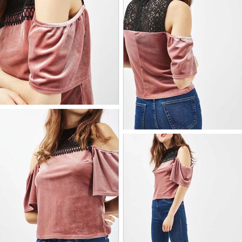 Bella Philosophy 2018 秋ブラウスシャツ女性ストラップレス中空アウトベルベット半袖シャツ Tel トップス ショート ハーフスリーブ オータム 秋物 bel21358479698 | aliel