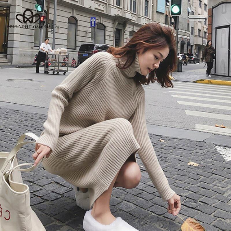 ベラ哲学 2018 秋と冬の無地ニットコットンセータードレスの女性のファッション緩いタートルネックプルオーバー オータム 秋物 ウィンター 冬物 ソリッドカラー bel46376929616 | aliel
