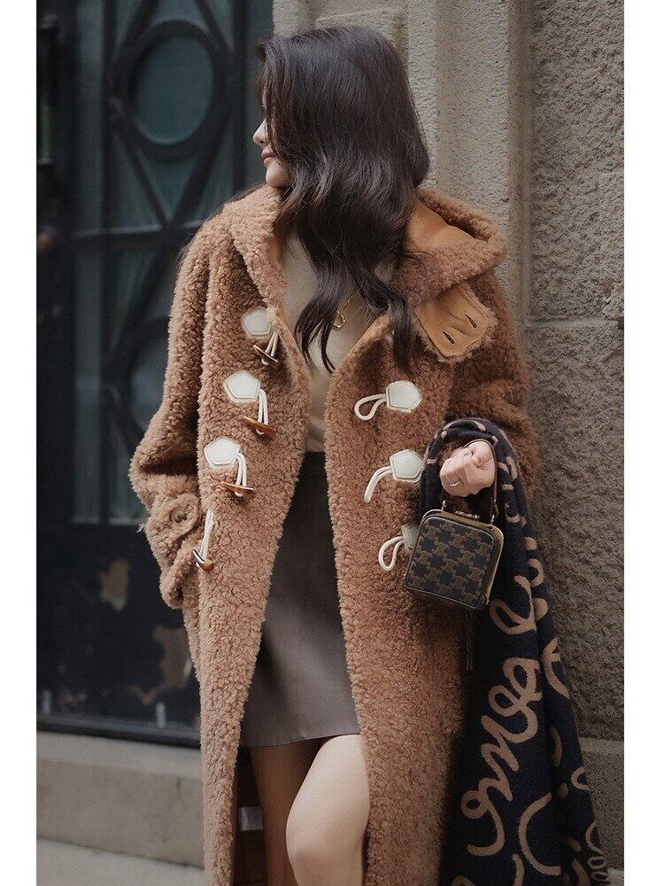 2022 冬の羊せん断 100 リアルウールの毛皮のコート子羊ウールロング毛皮のせん断コート casacos デ inverno feminino レッド ウィンター 冬物 bel14877655666 | aliel