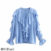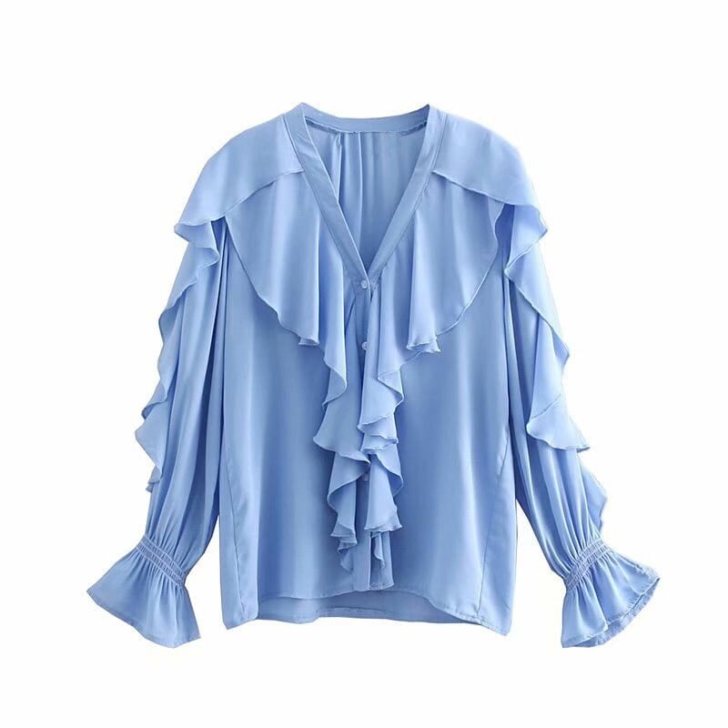 ベラ哲学夏トップス 2019 到着ディープ V ネックフリル女性ブラウスフレアスリーブチュニックソリッドセクシーなシャツ ラッフル サマー 夏物 Vネック ソリッドカラー bel16145876247 | aliel