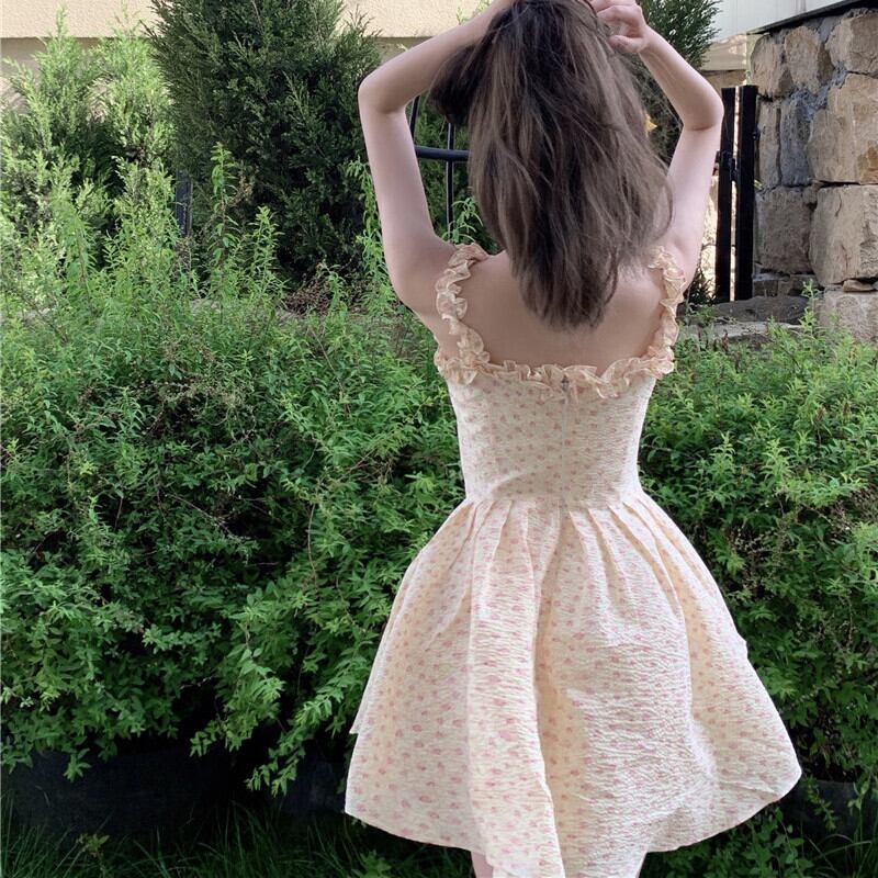パーティーミニ花柄ドレス夏 2021 プリントセクシーなストラップドレス女性フリル甘いボヘミアンビーチドレス 大人ガーリー スウィート キュート カジュアル サマー 夏物 bel63943060249 | aliel