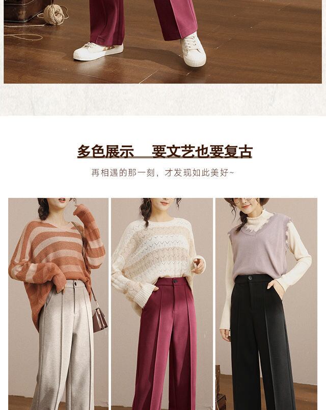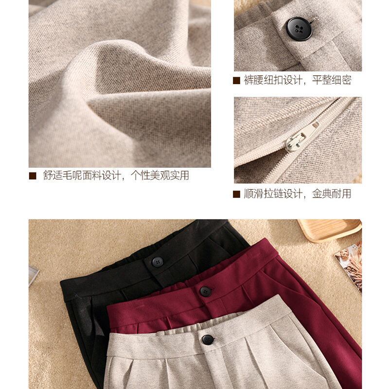 秋冬パンツ女性弾性ウエストウールワイドレッグパンツ厚く暖かい長ズボンウエストボタンのズボン ロング エラスティック 伸縮 オータム 秋物 ウィンター 冬物 ワイドパンツ bel69273067590 | aliel