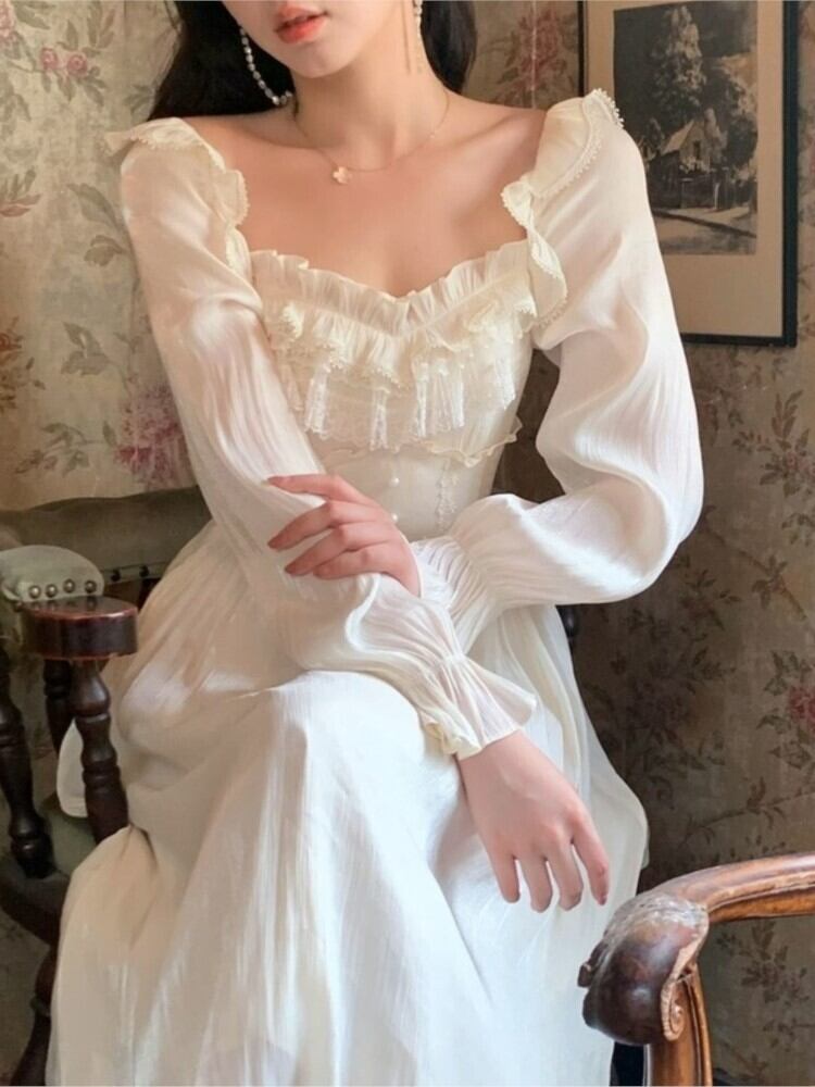 レースの妖精のドレス女性パッチワーク フリル長袖甘いドレス パーティー ドレス女性 2023 Y2k ロング 大人ガーリー スウィート キュート カジュアル bel55265308276 | aliel