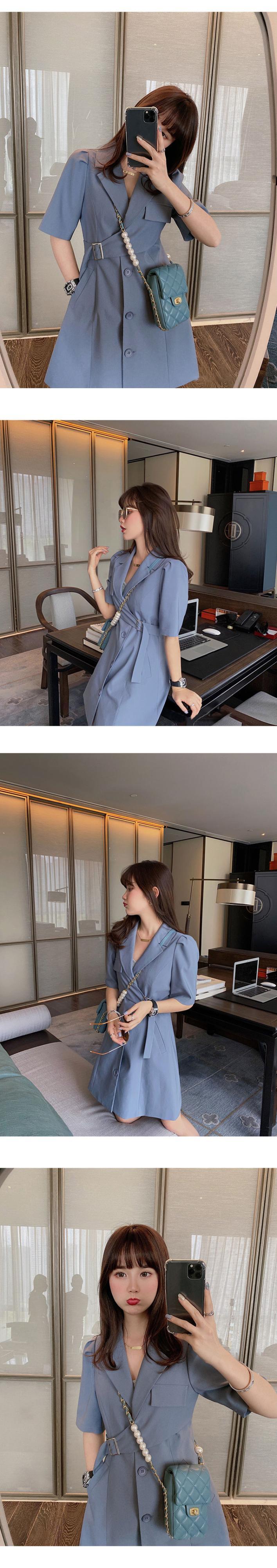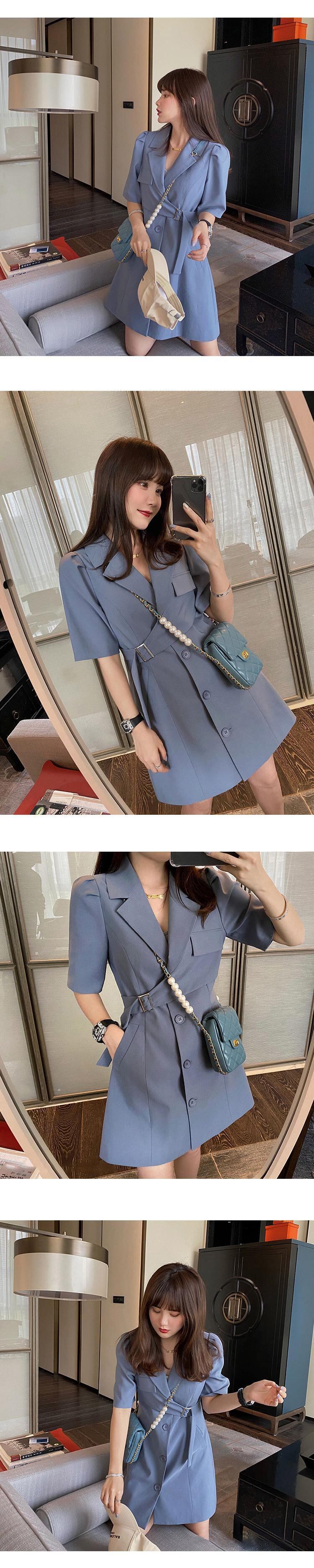 サマードレス女性ノッチカラーブルー調節可能なウエストミニドレス半袖オフィス Vestidos ショート ハーフスリーブ 夏物 アジャスタブル 会社 学校 通勤や通学にも bel80079836793 | aliel
