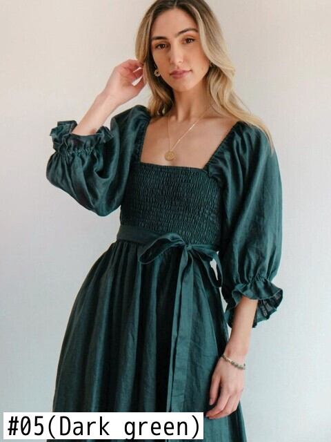 2023 春夏タイコードウエストベルトフリルランタンスリーブドレス女性のスクエアネック A ラインマルチ着用ドレス スプリング 春物 サマー 夏物 ハーネス Aライン スクウェア bel71579634576 | aliel