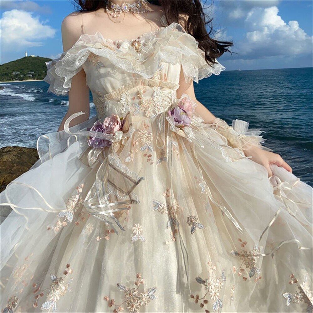 レトロロリータ Jsk ドレス ese 女性スウィートレース花刺繍ウェディングドレス女の子かわいいパーティー Vestidos 大人ガーリー キュート カジュアル 花柄 bel36323898993 | aliel
