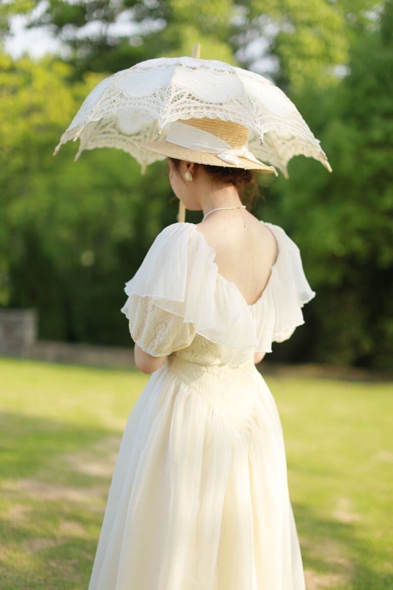 夏のロマンチックな妖精のドレスの女性のシックなレースのパフスリーブフリル V ネックソフトドレスパーティーナイト Vestido フェスタ ラッフル サマー 夏物 Vネック bel36711261788 | aliel