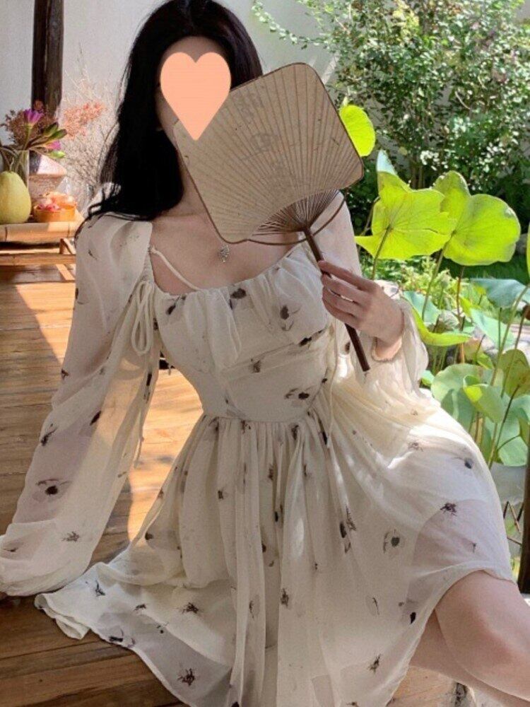 2023 女性春夏長袖ミニドレス A ラインスクエアカラードレスレディプリント Y2k ドレス ロング スプリング 春物 サマー 夏物 Aライン スクウェア bel47488603075 | aliel