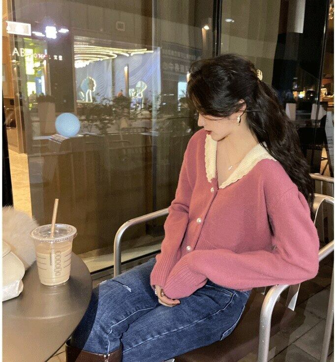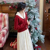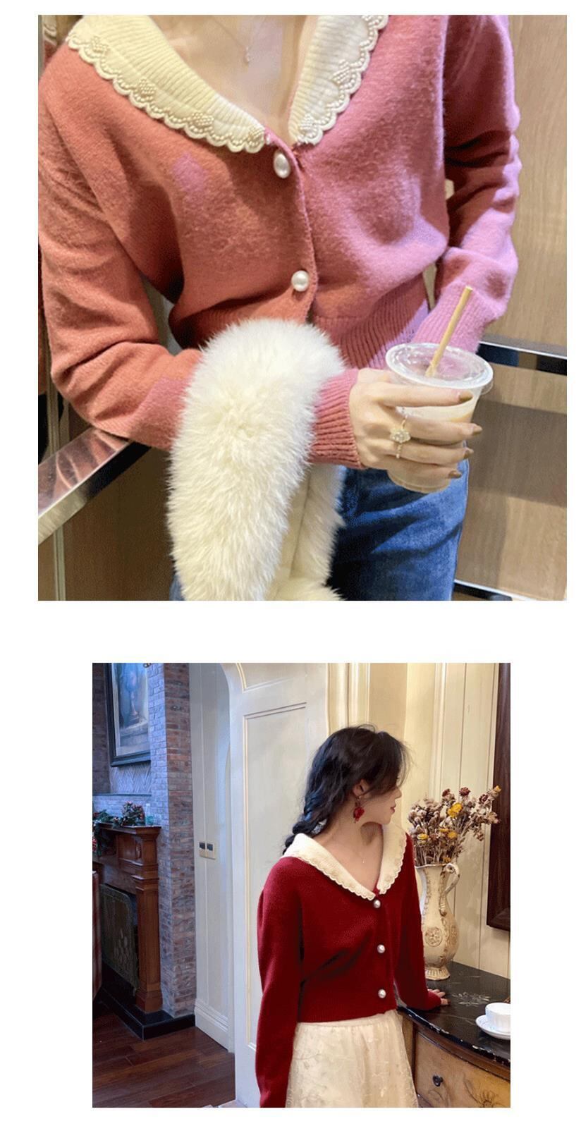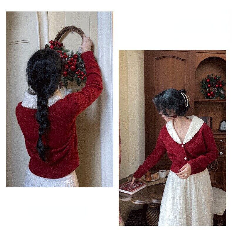 フランス暖かいニットカーディガンクリスマスセーター女性のレースジェントルクロップトップスオフィス秋冬セーター オータム 秋物 ウィンター 冬物 会社 学校 通勤や通学にも bel73663083832 | aliel