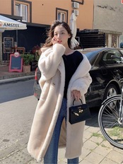 Bella Philosophy 女性の冬 100 本物の子羊の毛皮暖かいロングウールコート厚いテディベアコート緩いオーバーサイズ Outwears ウィンター 冬物 bel5864983564 | aliel