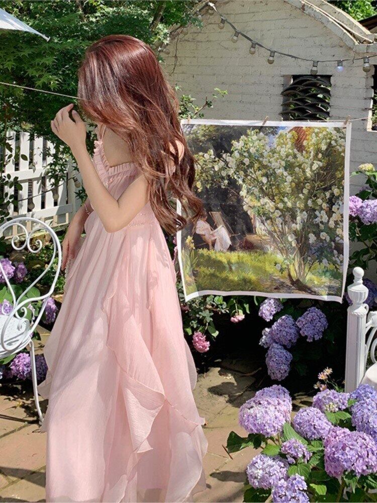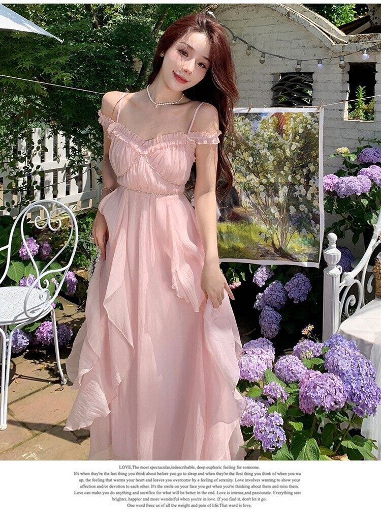 ピンク メッシュ ドレス女性 Wasit V ネック ミッド ドレス ノースリーブ A ライン スパゲッティ ストラップ夏のオフィス ドレス サマー 夏物 Vネック Aライン 会社 学校 通勤や通学にも bel24657826240 | aliel
