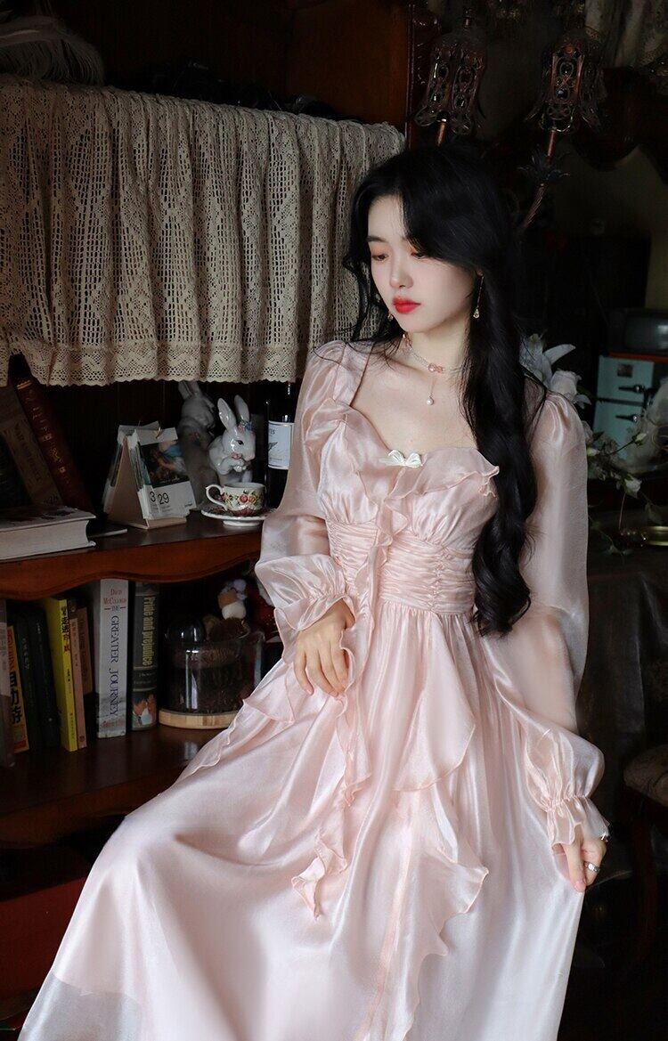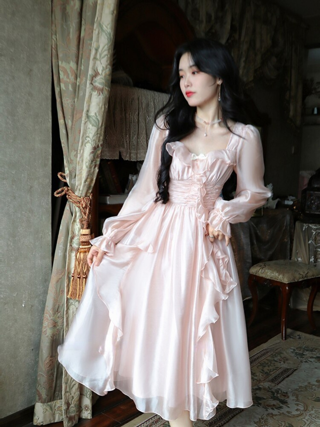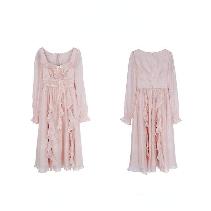 2023 秋のパーティーミディドレス女性ピンクの妖精スタイルの甘いドレスバブルスリーブのイブニングパーティードレス 大人ガーリー スウィート キュート カジュアル オータム 秋物 bel15704900382 | aliel
