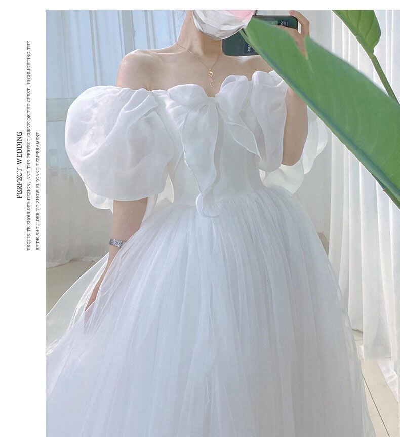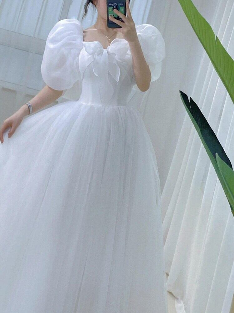 ホワイトスウィートメッシュドレス女性弓パフスリーブミディドレス 2023 秋のイブニングパーティードレス リボン 大人ガーリー キュート カジュアル オータム 秋物 bel68736513196 | aliel