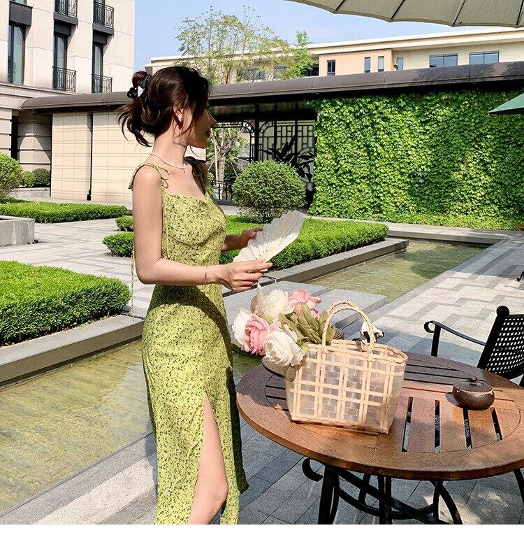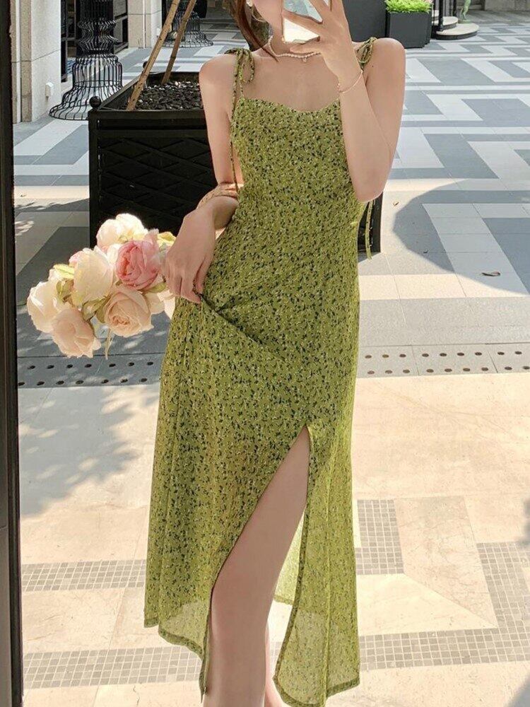 夏のパーティーミディドレス女性 2023 ストラップセクシーな Wasit ドレスノースリーブシフォン甘いドレスバック弾性 エラスティック 伸縮 大人ガーリー スウィート キュート カジュアル サマー 夏物 bel969921989 | aliel