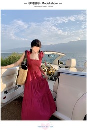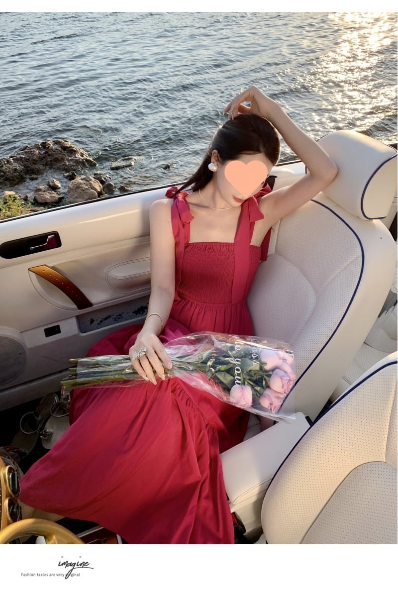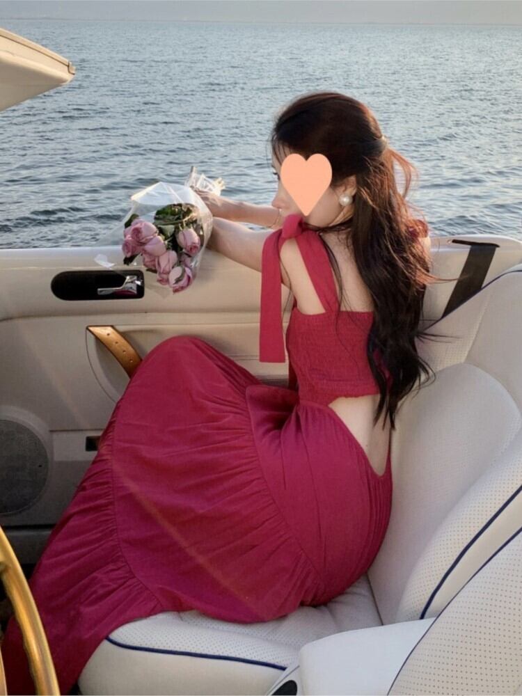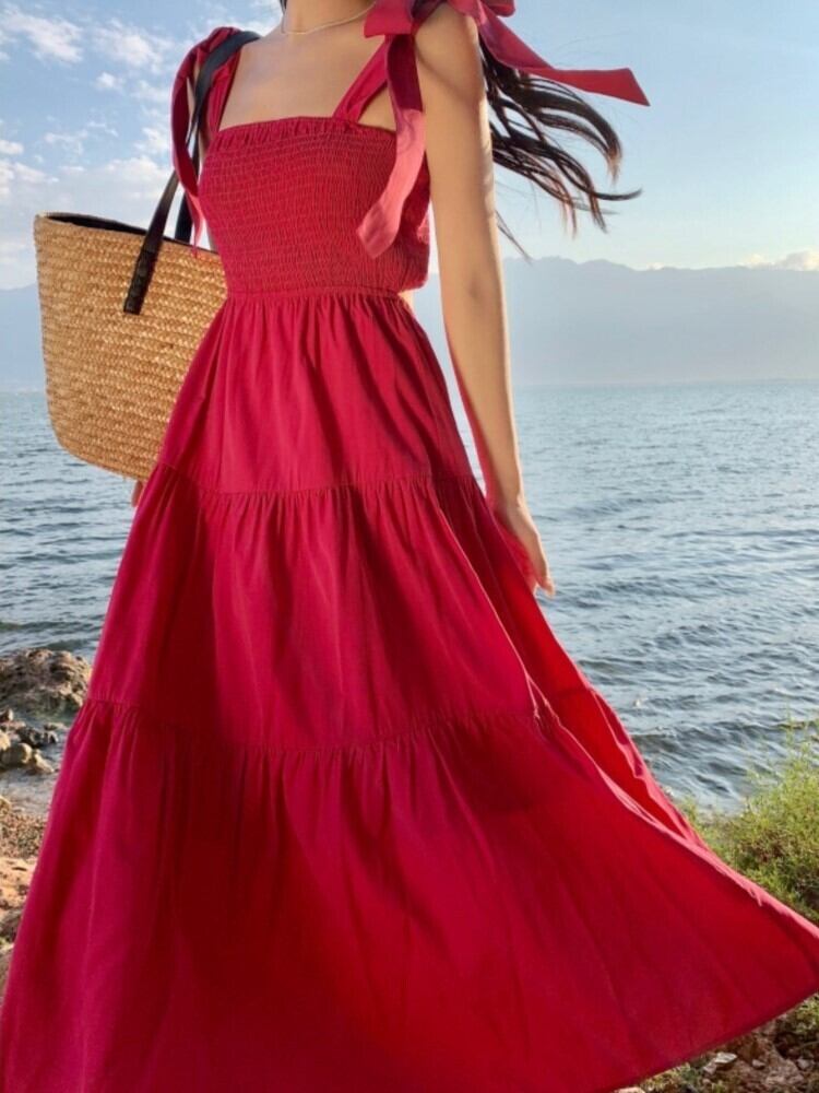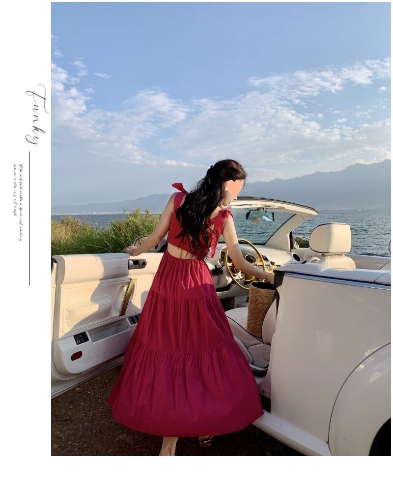 2023 女性ソリッドレースアップホリデードレス A ラインストラップウエストドレスレディ妖精ノースリーブ背中の開いたビーチドレス Aライン ソリッドカラー bel76033111197 | aliel