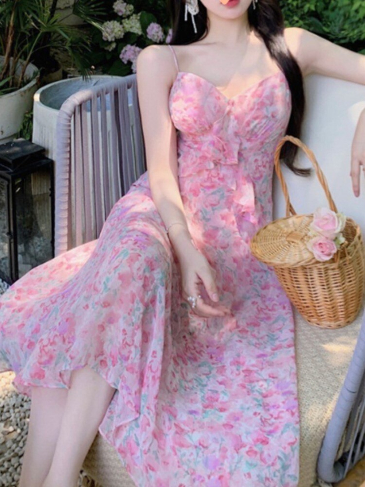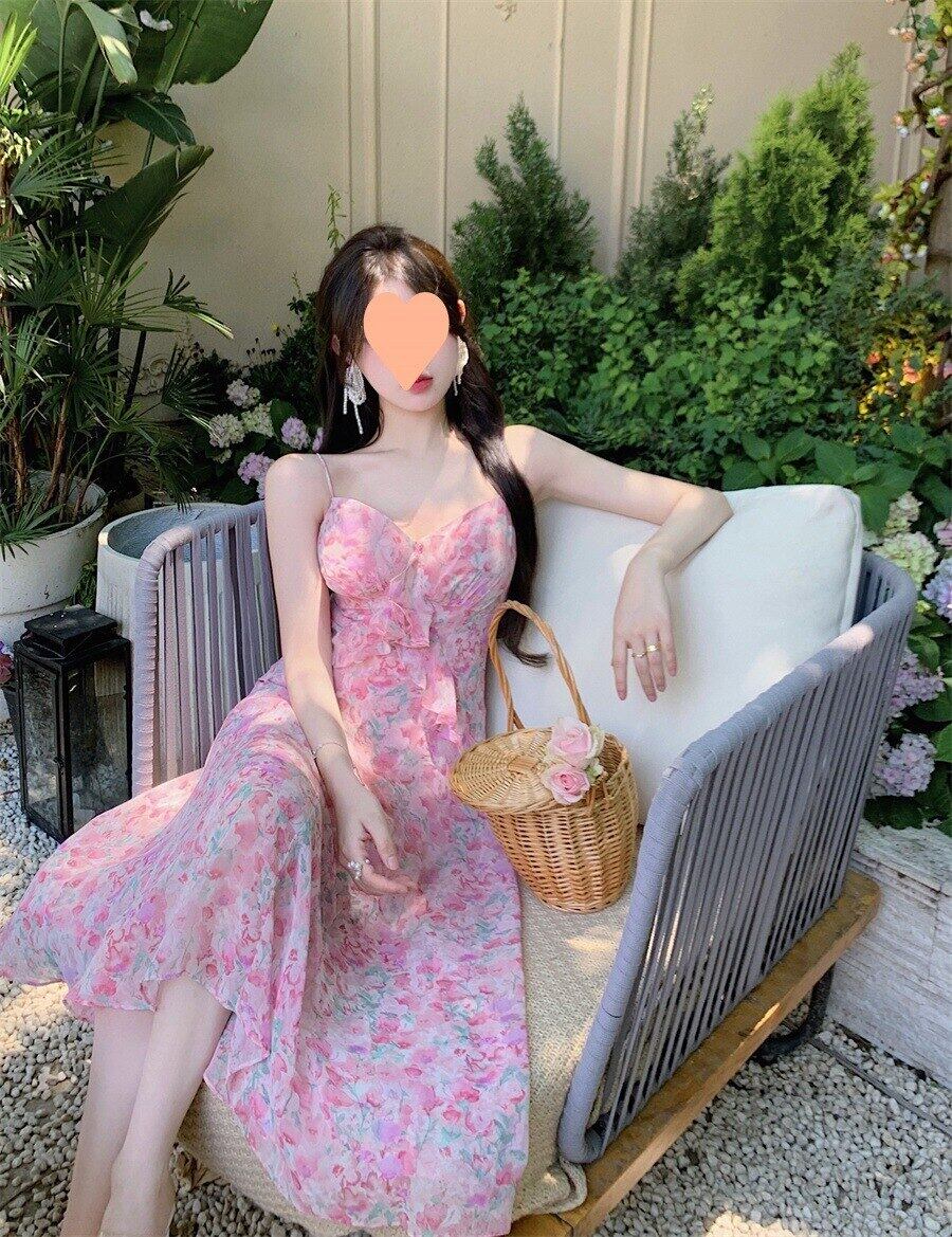 夏のパーティーミディドレス女性 2023 ストラップセクシーな Wasit ドレスノースリーブシフォン甘いドレス 大人ガーリー スウィート キュート カジュアル サマー 夏物 bel86084544201 | aliel