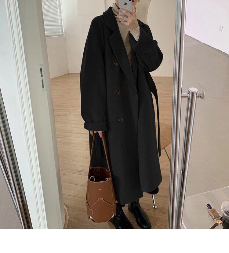 女性 2021 冬暖かいエレガントな黒のダブルブレストウールコート女性ヴィンテージサシェアウターウェア女性ボタンコート ブラック ウィンター 冬物 ビンテージ bel34817950569 | aliel