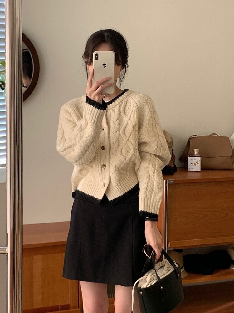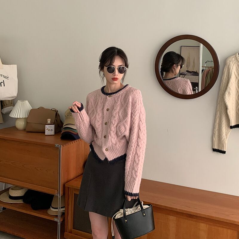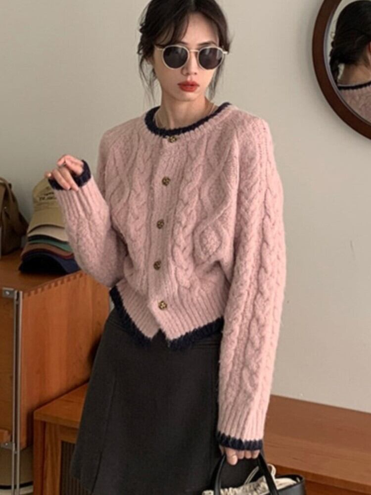 女性カーディガン O ネックシングルブレスト無地セーター OL 秋冬暖かい生き抜くニットトップス オータム 秋物 ウィンター 冬物 Oネック ソリッドカラー bel93927440475 | aliel