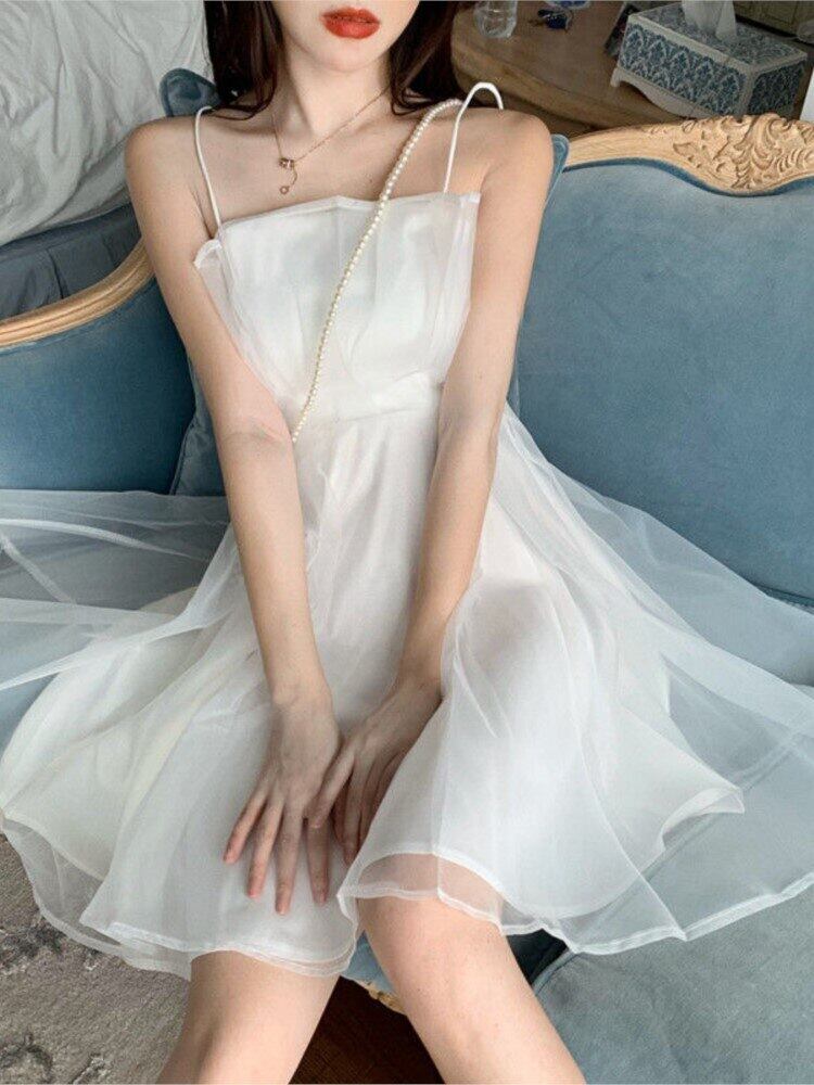 メッシュノースリーブミニドレス女性の夏のセクシーなかわいい Holidy ウエスト A ライン原宿スタイリッシュな美的スタイル 大人ガーリー スウィート キュート カジュアル サマー 夏物 Aライン bel18974642027 | aliel