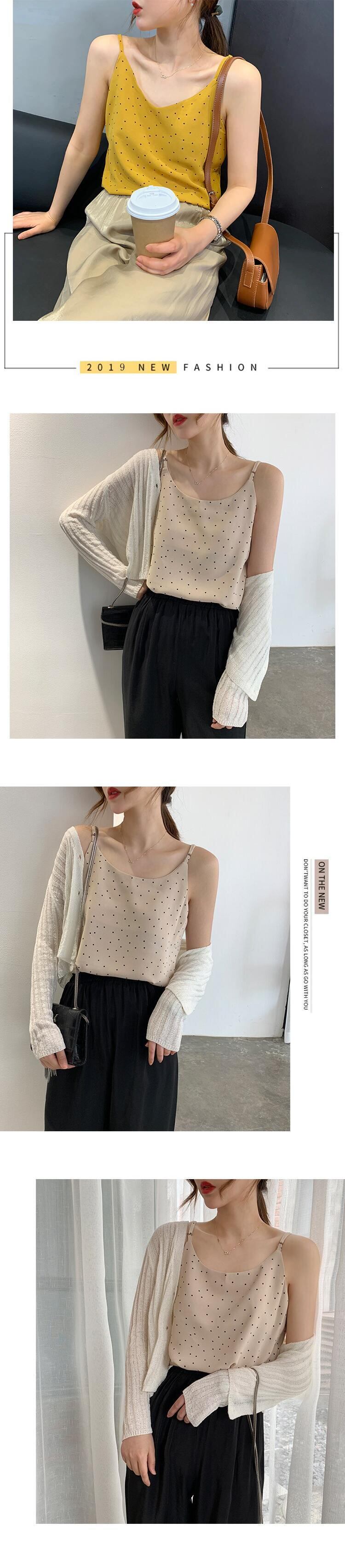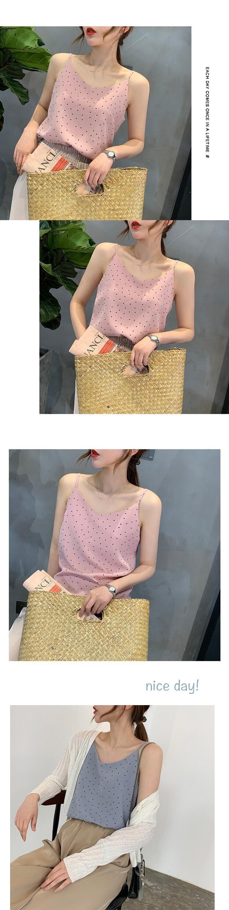 2020 夏フレッシュスタイルシフォンキャミソール女性 V ネックノースリーブ背中ドットプリント調整タンクセクシーなボトムトップ Tシャツ サマー 夏物 Vネック bel20051618079 | aliel