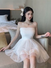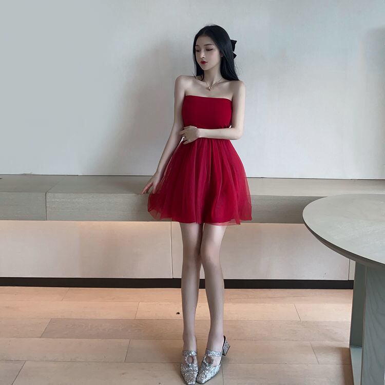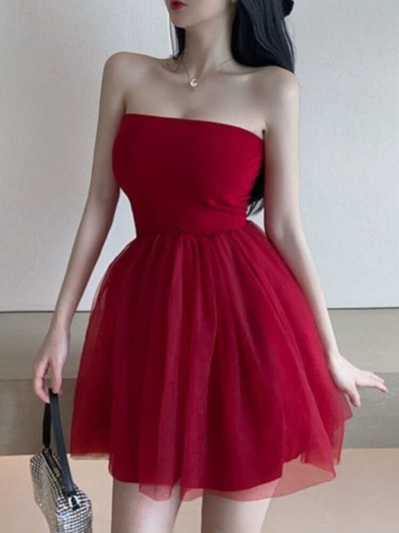 オフショルダーメッシュパッチワークパーティーミニドレス女性の夏のノースリーブウエストソリッドセクシーなウェディングチュチュドレスクラブウェア サマー 夏物 パニエ ペチコート ソリッドカラー bel51965089574 | aliel
