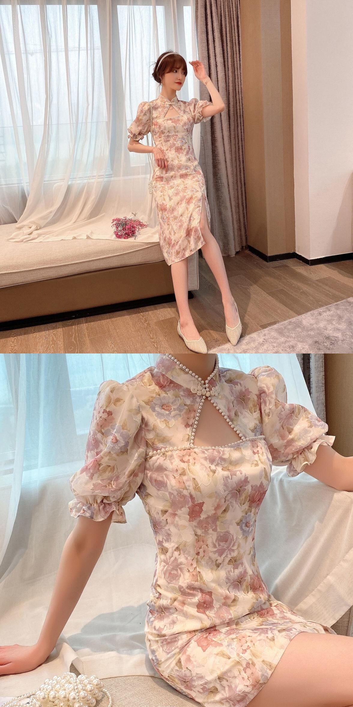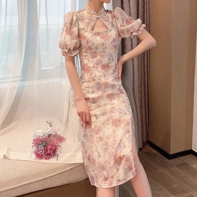 プリントフローラルドレス女性のセクシーな甘いドレスパフスリーブパーティースプリットドレス夏 2021 大人ガーリー スウィート キュート カジュアル サマー 夏物 花柄 bel46340472071 | aliel