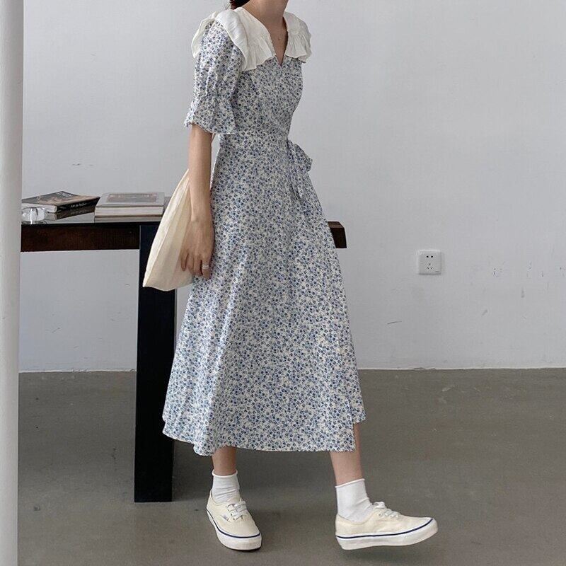 2021 オフィスレディストリートフレンチゆるいレトロな花柄プリント夏甘いロングドレス Vestidos 大人ガーリー スウィート キュート カジュアル サマー 夏物 会社 学校 通勤や通学にも bel70037251436 | aliel