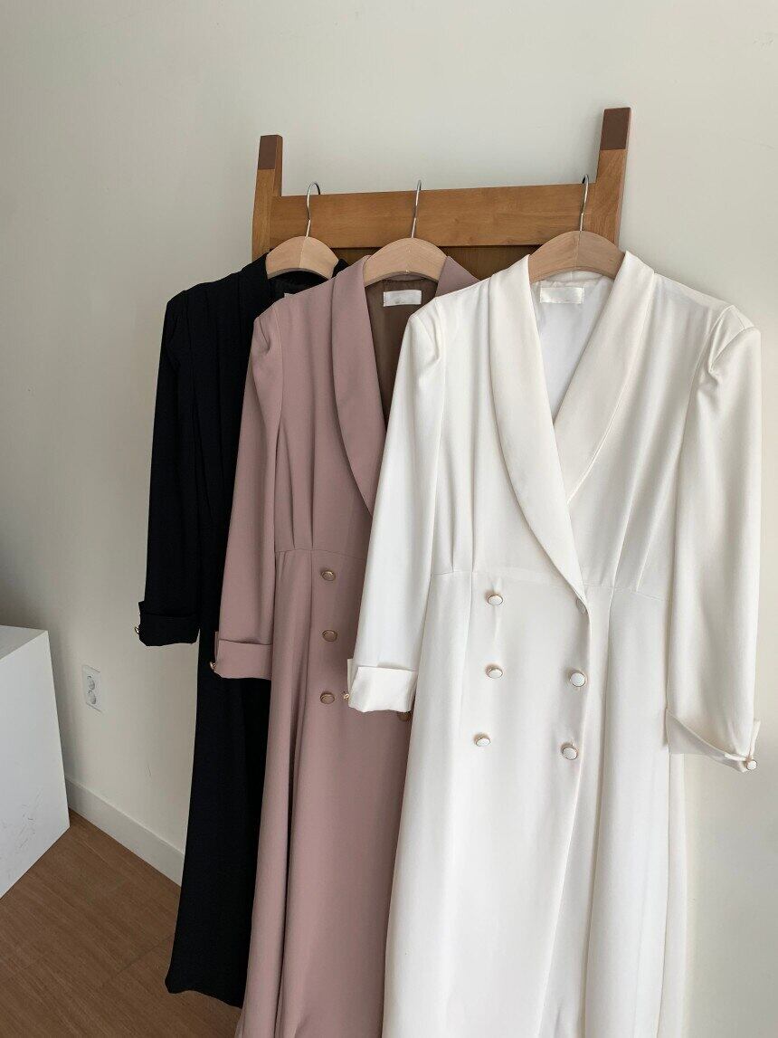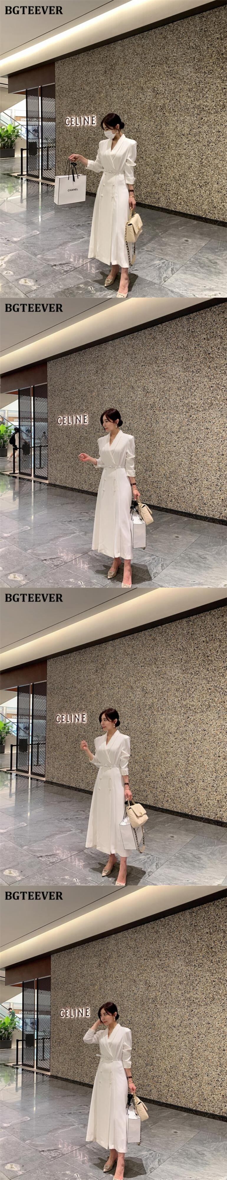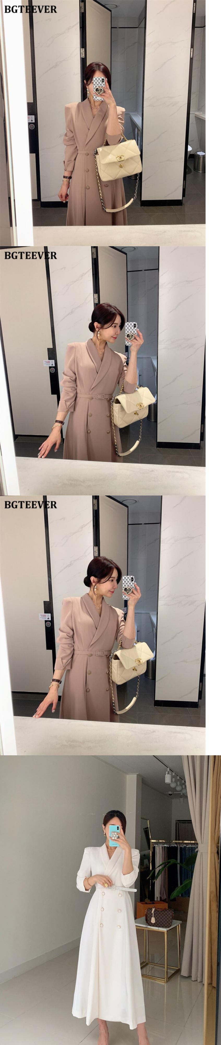 オフィスラペルスーツドレスダブルブレストスリムウエストベルト付きAラインドレス2021春Vestidos スプリング 春物 ハーネス 会社 学校 通勤や通学にも bel13685228322 | aliel
