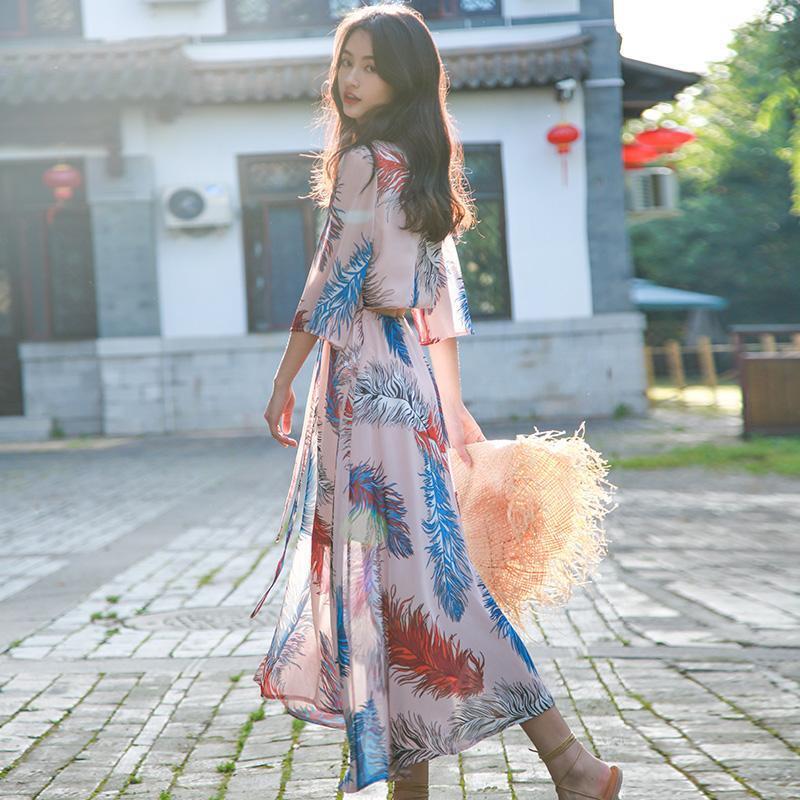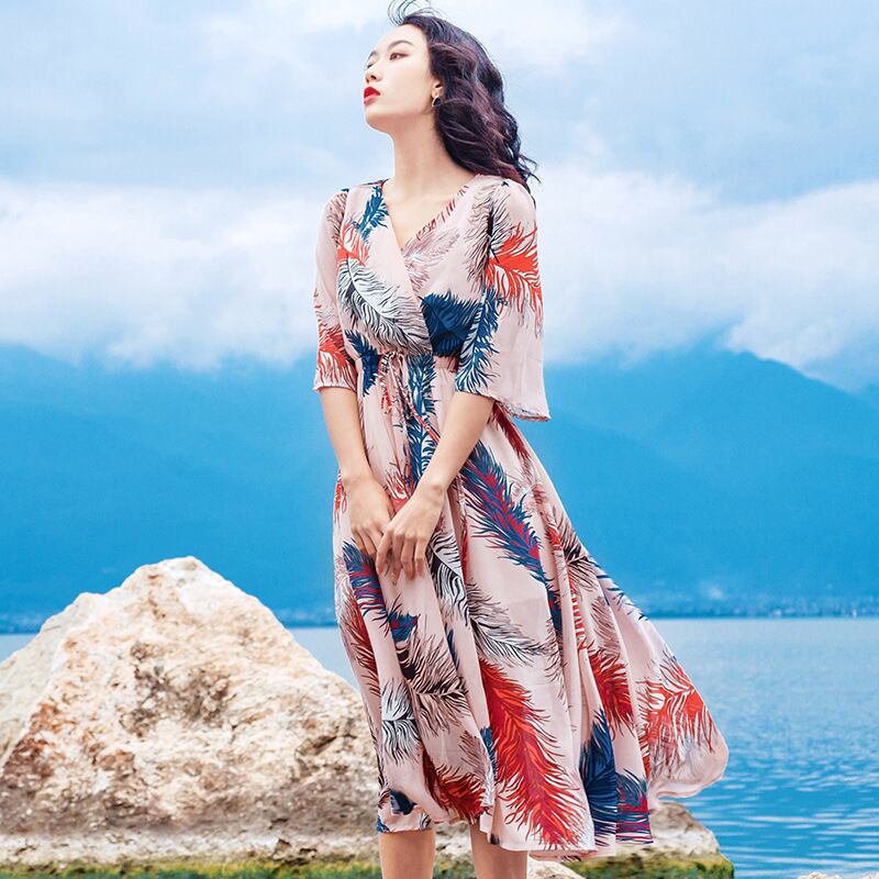 ベラ哲学 2020 女性のセクシーなボヘミアンビーチドレス女性 V ネック背中の開いたドレスの女性シフォン花柄プリント夏 Vestido サマー 夏物 Vネック bel47259086985 | aliel