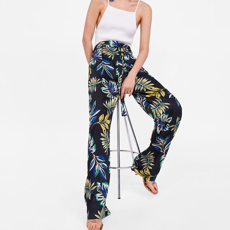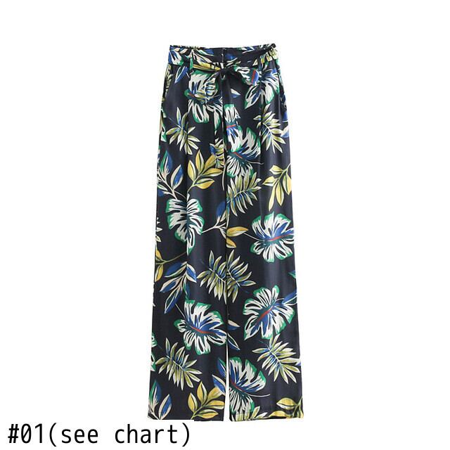 ベラ哲学夏秋のファッション葉プリント女性カジュアルロングパンツサッシ緩いワイドレッグパンツズボンハイストリートパンツ サマー 夏物 オータム 秋物 ワイドパンツ bel33178705251 | aliel