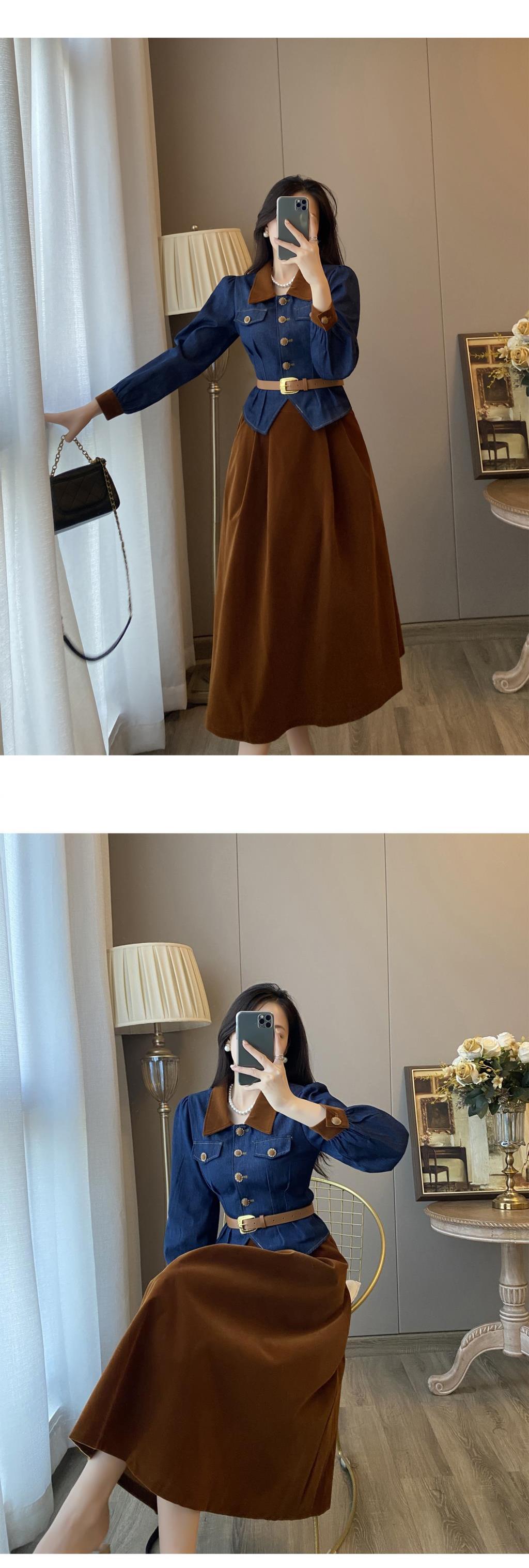 秋冬 2 点セット女性のラペル シングルブレスト ベルト スリム デニム ジャケット トップ + ウエスト A ライン スカート スーツ ウィンター 冬物 ハーネス Aライン bel80245907105 | aliel