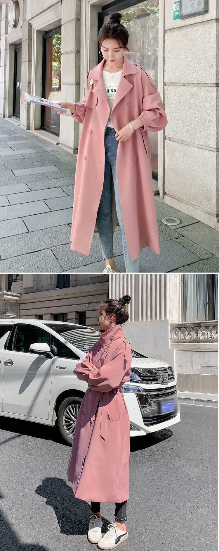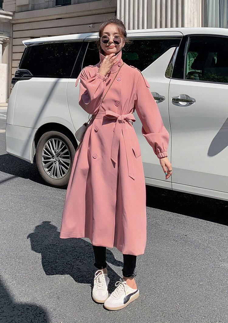 レディース トレンチコート ピンク 無地 サッシ付き 防風 長袖 ラペル 甘めスタイル 秋 ロング 大人ガーリー スウィート キュート カジュアル オータム 秋物 ソリッドカラー bel28611630483 | aliel