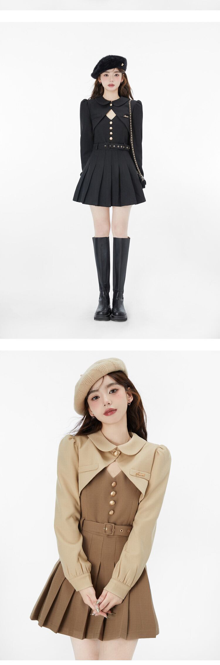 スタイルストラップドレス女性ブルーフレンチパーティーミニドレススタイルプリーツドレス秋 オータム 秋物 bel30398052649