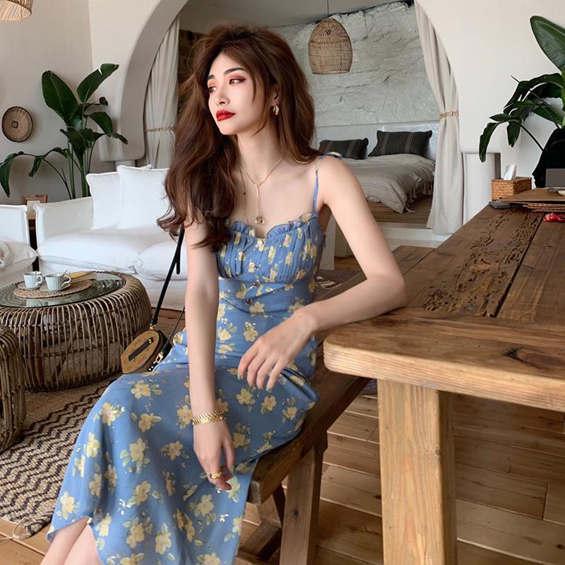 ノースリーブ ストラップ ドレス女性スクエア カラー Vingate フローラル ミディ ドレス ビーチ ワンピース ドレス オフィス レディ夏 サマー 夏物 花柄 スクウェア 会社 学校 通勤や通学にも bel75280326964 | aliel