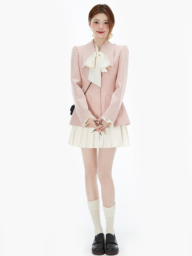 春ツーピースセット女性弓甘いパーティードレスセット長袖フランスシックなミニドレススーツ ロング リボン 大人ガーリー スウィート キュート カジュアル スプリング 春物 bel21421022612 | aliel
