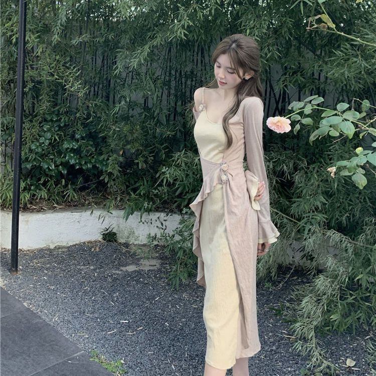 女性フリル パーティー ミディ ドレス春甘いニット ドレス フレア スリーブ ドレス フレアスリーブ ラッフル 大人ガーリー スウィート キュート カジュアル スプリング 春物 bel54393868109 | aliel